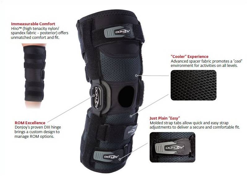 - ROM Excellence - DonJoy's proven DIII hinge brings a custom design to manage ROM options